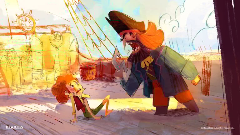 "The Treasure of Barracuda" is a 2D animated feature film project developed at Hampa Studio. The story follows a crew of pirates who, after discovering a mysterious treasure chest, set off on a lighthearted adventure filled with humor, friendship, and the search for treasures more valuable than gold. I contributed to the visual development of the pitch materials created to present the project. My work focused on light and color exploration, as well as producing key illustrations that helped define the film’s overall mood and atmosphere during its early development stage.